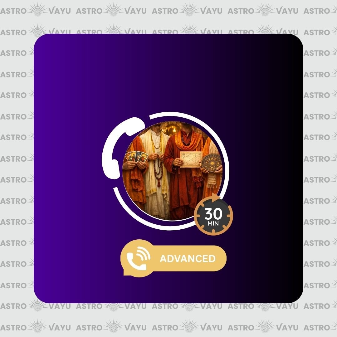 Experience a focused 30-minute consultation with our AstroVayu astrologer team. In this advanced session, our expert astrologers combine Numerology, Astrology, Vastu Shastra, and Tarot to provide deeper, personalized guidance tailored to your situation.